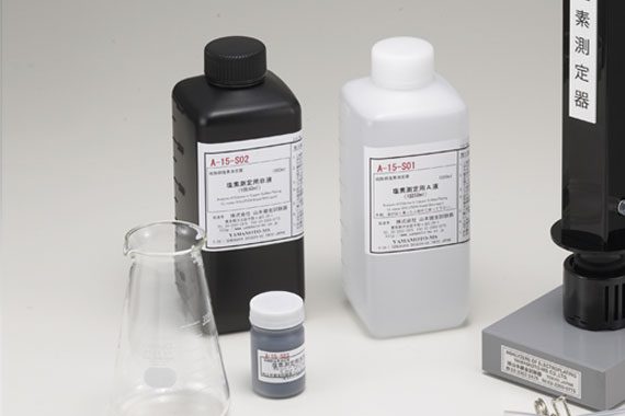 硫酸銅塩素測定器に必要な試薬のセットです。内訳:A-15-S01 硫酸銅塩素測定器用 A液 1000mLA-15-S02 硫酸銅塩素測定器用 B液 1000mLA-15-S03 硫酸銅塩素測定器用 活性炭 50回分*個別販売もしています。*写真は一例です。