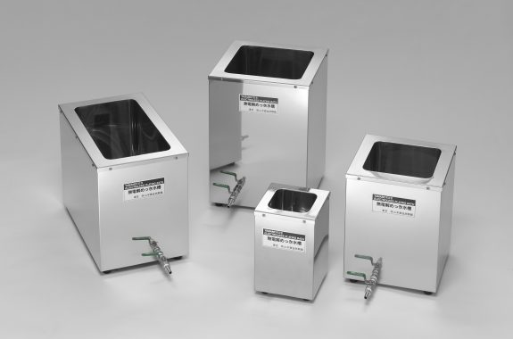 無電解ニッケルめっき用のステンレス製水槽です。SUS316の水槽は二重構造のため保温性に優れ、95℃までの高温実験ができます。