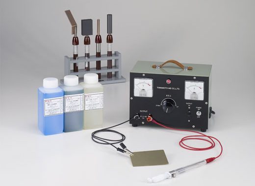 一部分だけにめっきをしたいキズの補修や、高価な薬品の節約のために少ない液量でめっきしたい場合等に効果的です。また、水槽に入りきらない大型の機械部品や、印刷ロール、シャフト等取り外しができない部品にも使われています。
