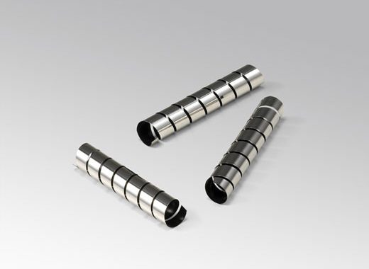 スパイラル応力計用の専用試験片で、片面をコーティングした短冊状の板をスパイラル状に巻いてあります。
