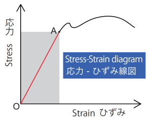 σ=E・ ε (σ : 応力、E : ヤング率(弾性係数)ε : ひずみ)