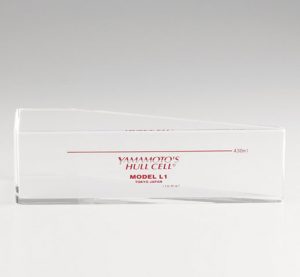 | ハルセル (並型水槽ロングタイプ) | B-55-L | ![]() | 通常のハルセルより陰極側を横に長くすることで、電流密度による差をより詳細に観察することが可能です。合金めっきなどに最適です。 |