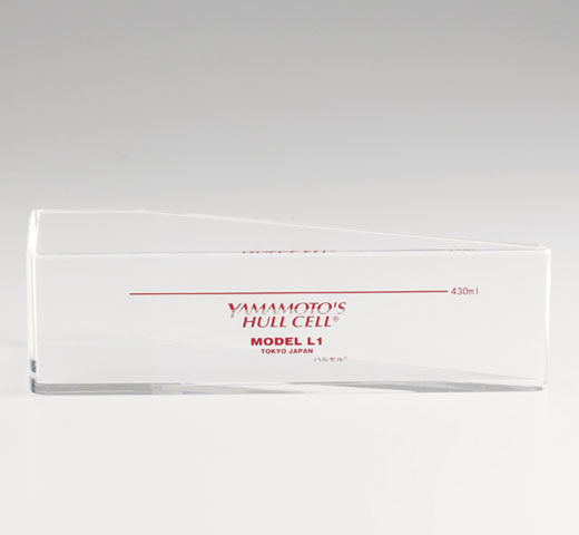 その結果、台形の上辺(短い方の寸法60mm)と液面の高さ(50mm)が通常のハルセルとは異なります。